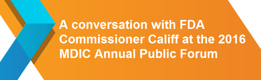 11/09/2015 Videos published online from MDIC 2015 Annual Public Forum featuring a keynote presentation from FDA Deputy Commissioner of Medical Products and Tobacco, Dr. Robert Califf