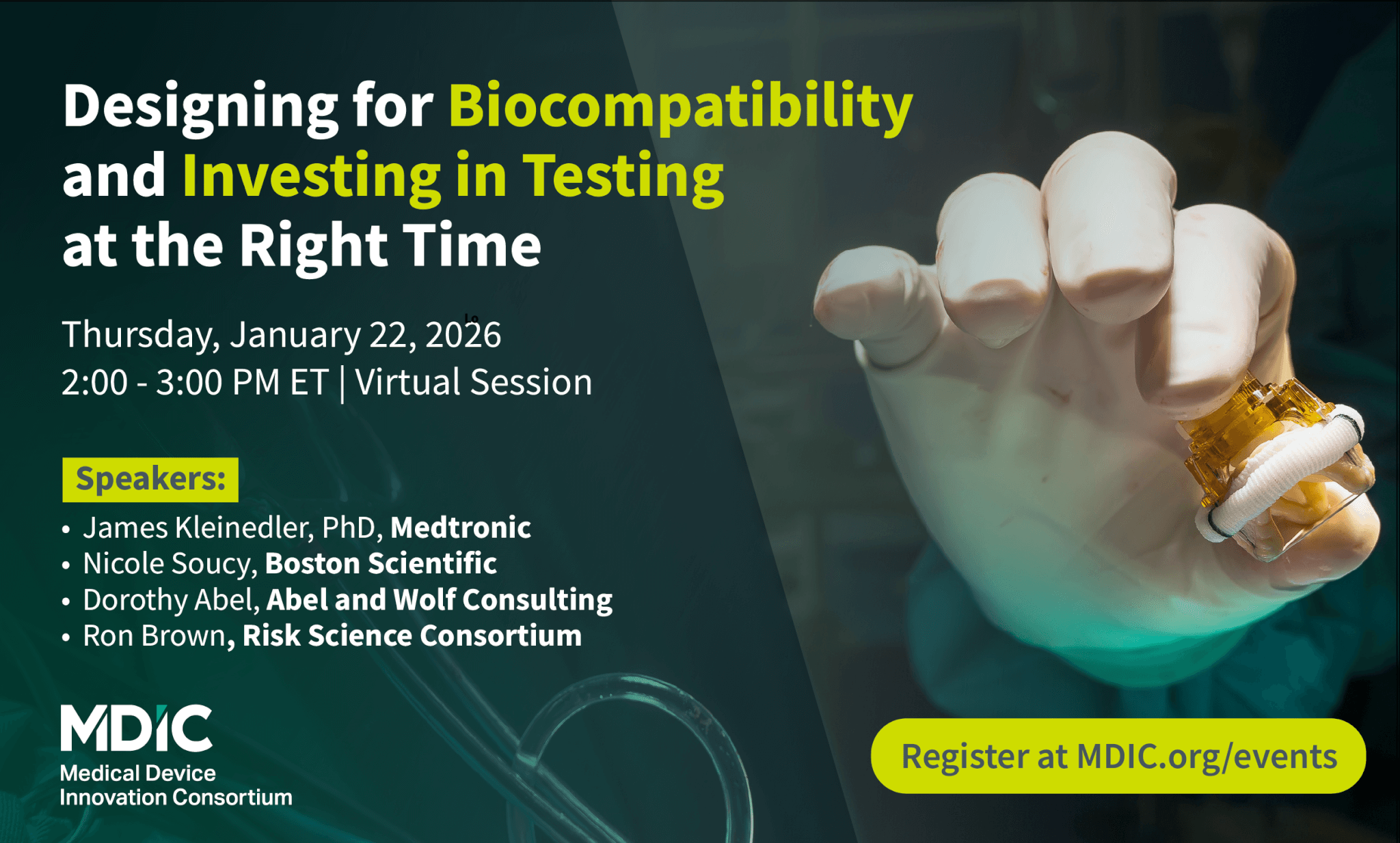Early-stage medical device companies frequently encounter FDA setbacks—not because biocompatibility was ignored, but because it was addressed too late, too narrowly, or without the right supporting evidence. This interactive webinar brings together regulatory, technical, and programmatic perspectives to help teams design biocompatibility into their devices from the start and make smart, timely investments in testing that support IDE and EFS success.